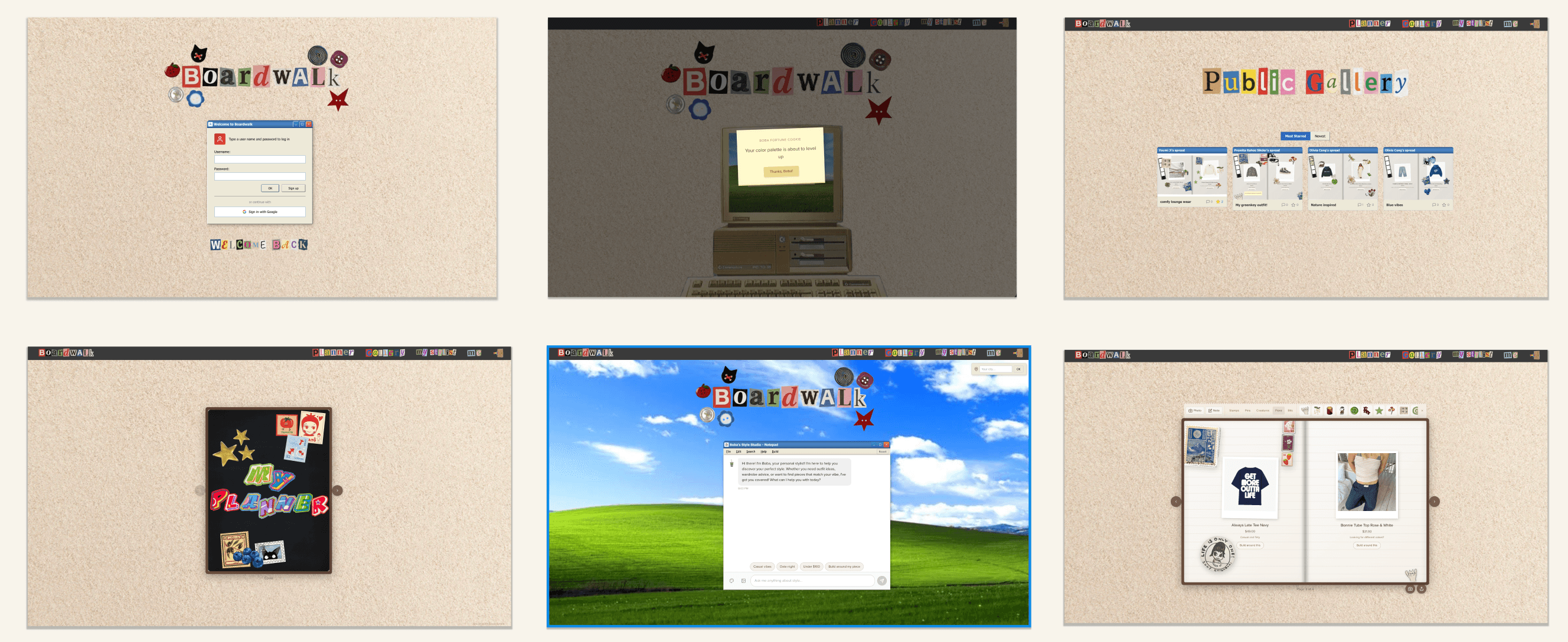 Boardwalk is an AI-powered fashion discovery platform that I co developed and designed. Users describe what they're going for like y2k, coastal grandmother, NYC streetwear, etc. and an agentic AI stylist named Boba finds real products from emerging indie brands, builds complete outfits within budget constraints, and develops a persistent understanding of one's taste over time. The entire interface is our love letter to Windows XP (draggable title-bar windows with z-index stacking, a CSS-only gradient chrome, and retro sound design).